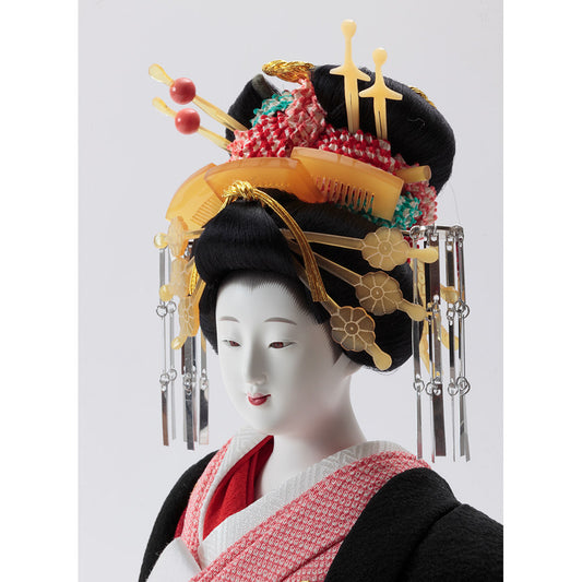 Japanese Oyama Doll, Geisha Tayū Pure Silk Black Kimono F300-1-Z-US-S
